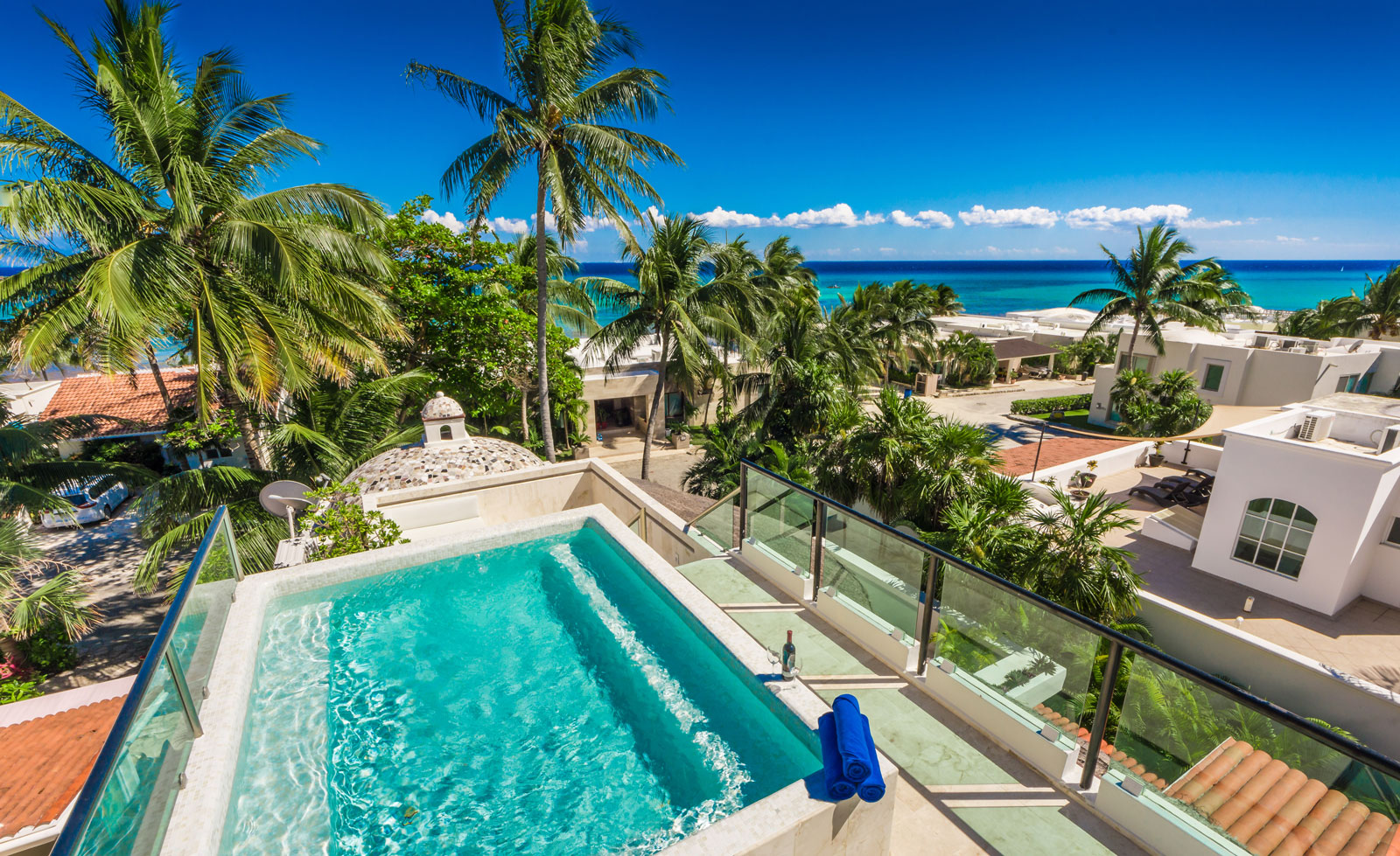 Casa Nikki is a charming privately owned 5 Bedrooms and 5 Bathrooms Villa, located in the exclusive gated community of Playacar phase 1, in the heart of the famous Mexican’s Riviera Maya. You and your group will immediately feel at home in this comfortable, spacious yet luxurious private beach villa. Built over three levels, this magnificent Mexican style villa offers you 4 king and one queen sized beds, with 5 bathrooms, where up to 10 guests can be accommodated. The estate is also completed with two pools, one at the entrance level near the beach and a plunge pool on the rooftop to sit and watch the sparkling ocean or catch the sunset!