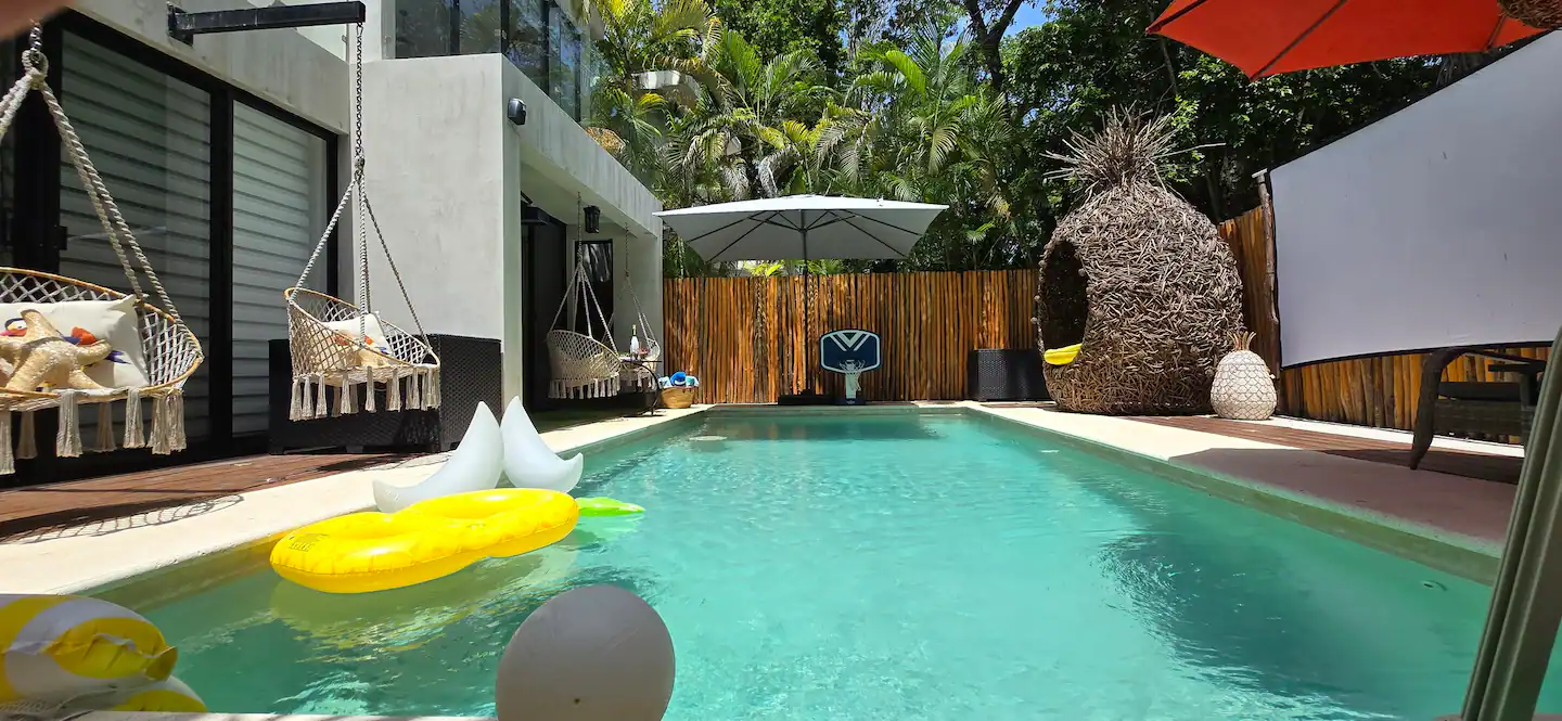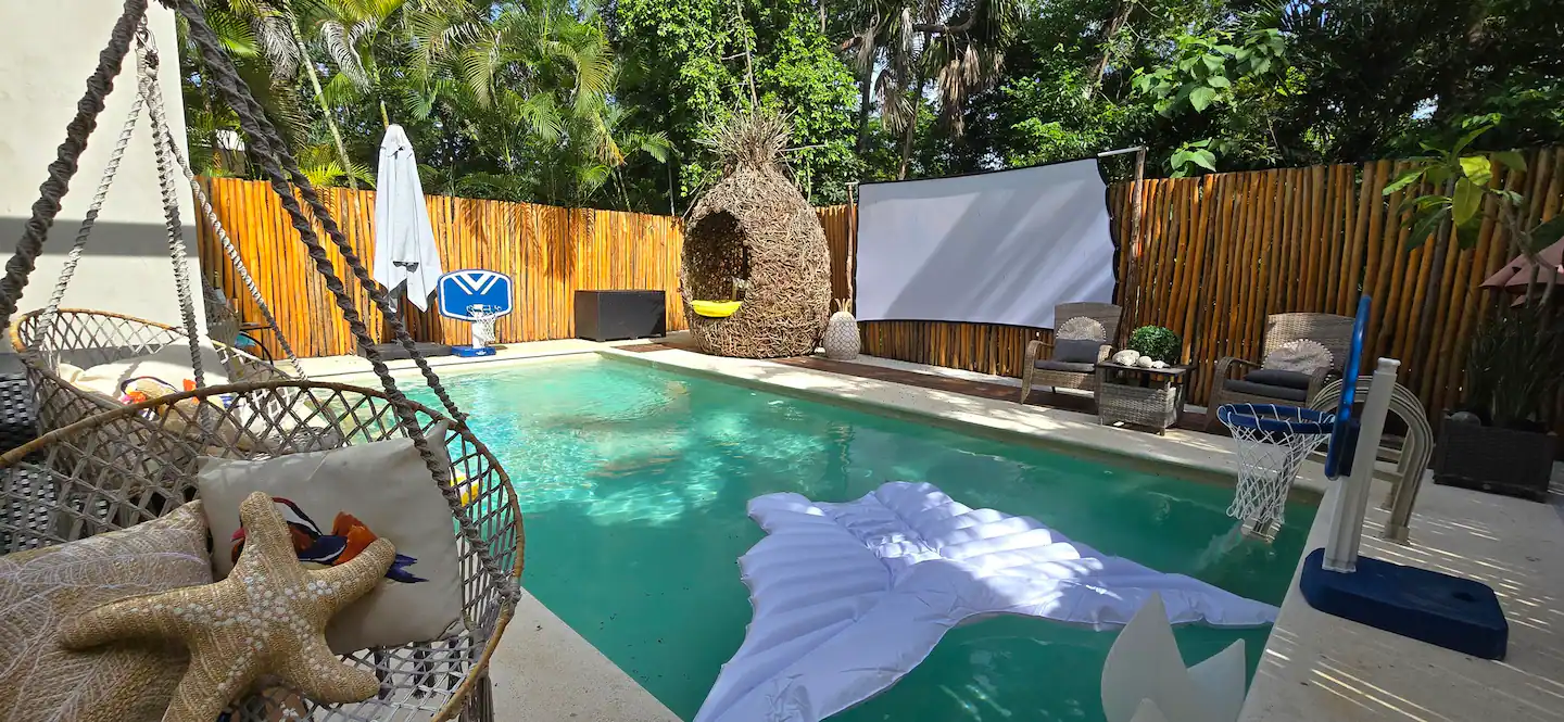 As the sun sets over paradise, immerse yourself in a cinematic experience in the pool area, where a projector with a screen invites you to stream or watch movies under the starry Caribbean sky. Balconies overlooking the lush surroundings and inviting pool complete the luxurious ambiance. Every piece of furniture in this modern masterpiece is custom-made to complement the lavish elegance of the house. From the moment you step inside, you’ll be enveloped in an atmosphere of sophistication and comfort that sets the Casa Pulpo House apart from the ordinary. Your next vacation deserves nothing less than perfection, and it’s all right here, waiting for you. Come and experience the allure of Casa Pulpo – your extraordinary home away from home.